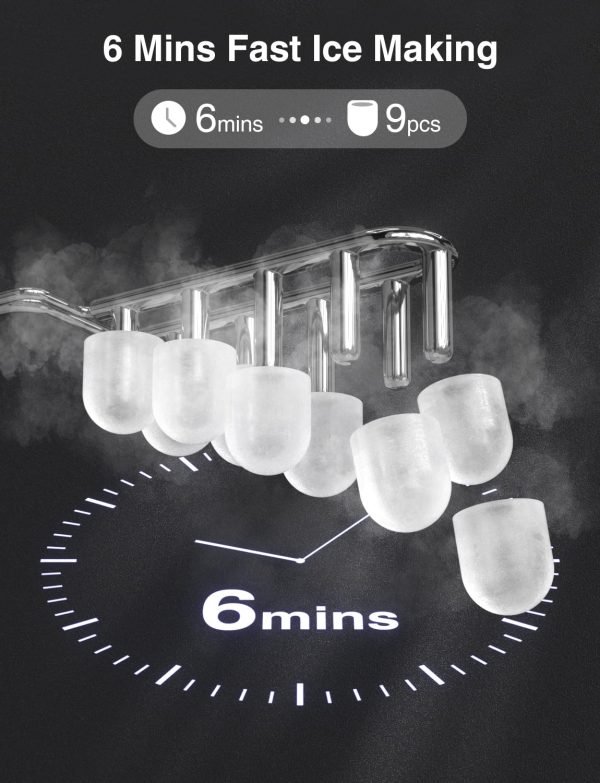 6 Min Fast Ice Making: The ice maker countertop can make 9 bullet ice cubes in just 6 minutes and up to 12kg ice cubes in 24 hours. Portable ice makers can quickly make 2 size of bullet ices that can cool your drinks. Whether you’re at a family activities or at work, you can enjoy ice drinks anytime, anywhere.