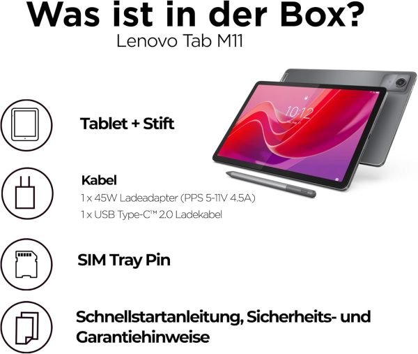 Lenovo Tab M11 Tablet | 10.95 Inch WUXGA Touch Display | MediaTek G88 | 4GB RAM | 128GB eMMC 5.1 | Android 12 | Grey | Includes Pen